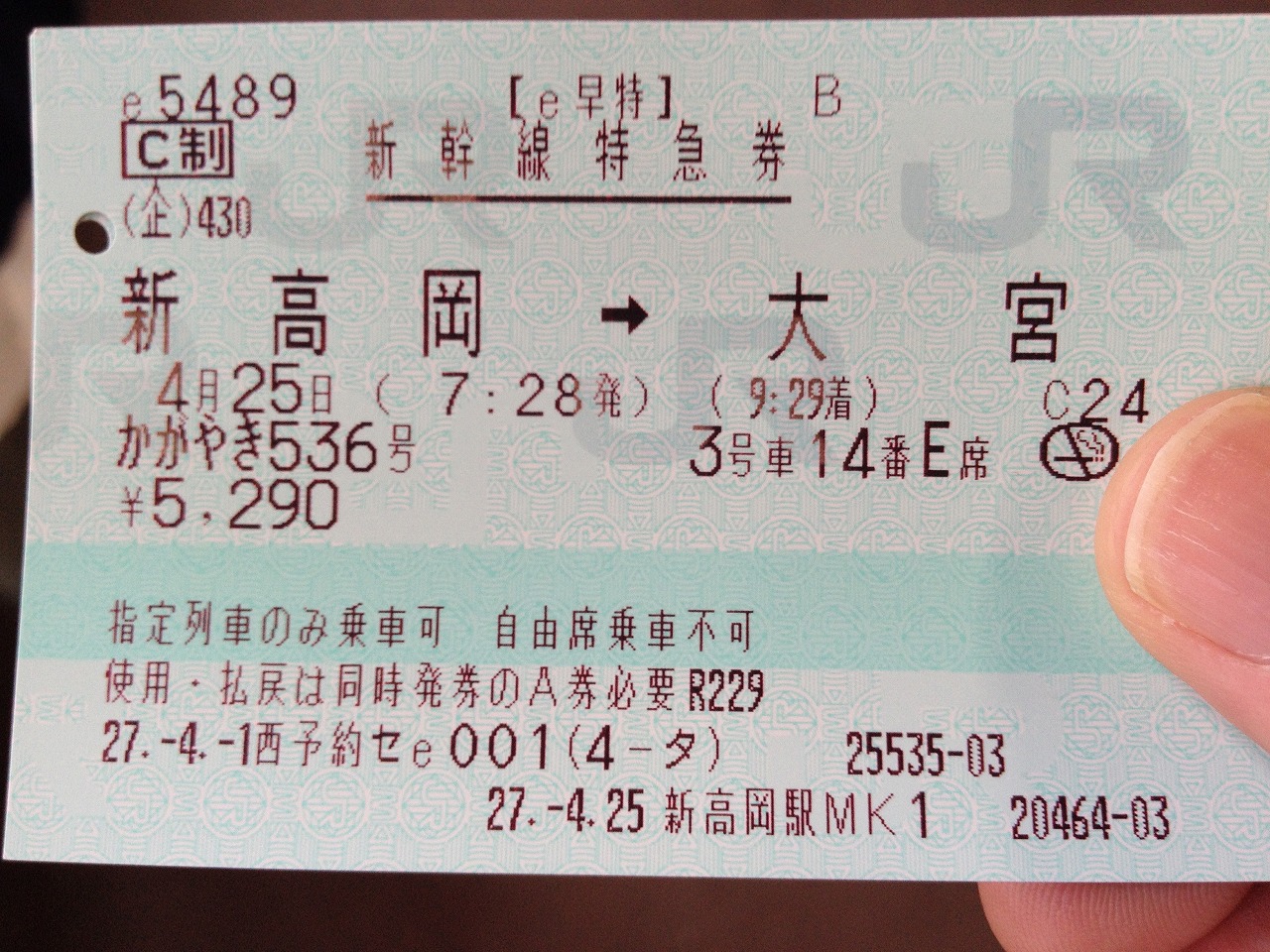 新幹線の車窓からは、今までとは違った景色が楽しめました。今までと若干違う路線を走っているというのもありますが、そもそも建物の3階くらいの高さで走っているので、遠くの景色まで楽しむことができます(^^)普段見慣れた建物達も、違うアングルから見ると新鮮なものです。左側の座席では遠くに海が、右側の座席では遠くに立山を見晴るかすことができ、非常に良い眺めを堪能できます(^_^)/そんな感じでグングン上がっていくスピードと同時にテンションもグングン上がっていったのですが、程なく減速に転じ、あっという間に次の富山駅に到着しました。まあこの辺りは特急で12分かかっていたのが10分になった程度なので、そんなに差は感じません。真価が発揮されるのはここからです。「次は長野に停まります」というアナウンスが我々にはすごく新鮮(^^)富山の次が長野、その次は大宮ということで、わずか2駅しか間に挟まずに一気に首都圏まで行くことができます。他の地域の人にこの感覚わっかるかなぁ~。わっかんねぇ~だろ~な~by松鶴家千とせ再度グングンスピードを上げると、30分くらいでもう富山県ゾーンを終了することになります。その後は立山連峰を貫くトンネルに入り込むことに。北陸新幹線は山の中を走ることが多く、トンネルが40%という話を聞いていました。が、それ程には感じませんでした。まあ元々の「ほくほく線ルート」もトンネルが多かったので、あんまり気にならないというか、むしろ高速で通過してしまう分、通過する時間も短いというか。携帯の電波はその間途切れてしまいますが、まあヘビーユーザーでなければそこまで気にならない程度です。ただ気になる乗車率は、朝早い便ということもあって30%くらいでした。うーん、これで本当にやっていけるのでしょうか?(ーー;)北陸新幹線は全12両編成でガンガン走っていますが、それまで特急は6両編成でしたから、単純に輸送量が倍近くに。しかも今は臨時便まで加わって本数が増えているので、かなり輸送量がふくれあがっている計算です。いくら北陸新幹線フィーバーといえ、そんなに極端に乗客数が増えることは無いですよね(~_~;)ですから正直走らせ過ぎとは思うのですが、まあこの辺りは私も素人ですし、折り返し運転の関係などもあるようなので一概に言えません。まあ曜日や時間帯に応じて全然違うようですし、今でも一部便は満席状態にはなっています。なので詳しい人に聞く限りは心配には及ばないようですが。一年経て、実績を見ながらダイヤを調整するんでしょうね。そんな余計な心配はさておいて、私はずっとスマホでGoogleマップを見ながら「おぉ、長野県に入った(^^)」「ここからはもう完全に従来の路線を離れて新ルートだ!(^_^)/」などと一人で盛り上がっていました。嫁は朝が早かった分眠そうで、私のハイテンションを適当にあしらっていました(~_~;)そうこしている間に長野駅に到着。5年ほど前に会社の研修で来て以来ですが、今回はここが目的地ではありません。善光寺の御開帳で盛り上がる長野駅や、外目からでも「いかにも軽井沢!」というような建物が並んでいる軽井沢を通過して、やがて最終目的地大宮に到着しました。長野にも行きやすくなりましたから、そのうち行ってみたいと思います(^_^)/(つづく)
