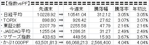 ・今年は最初の週は+2,566,400円と好発進。対指数に対しても上回るパフォーマンスとなり好調だった。今週はワキタ、ネクスト、フクダ電子、山田コンサル、エクセルなど保有銘柄はほぼ軒並み堅調だった。