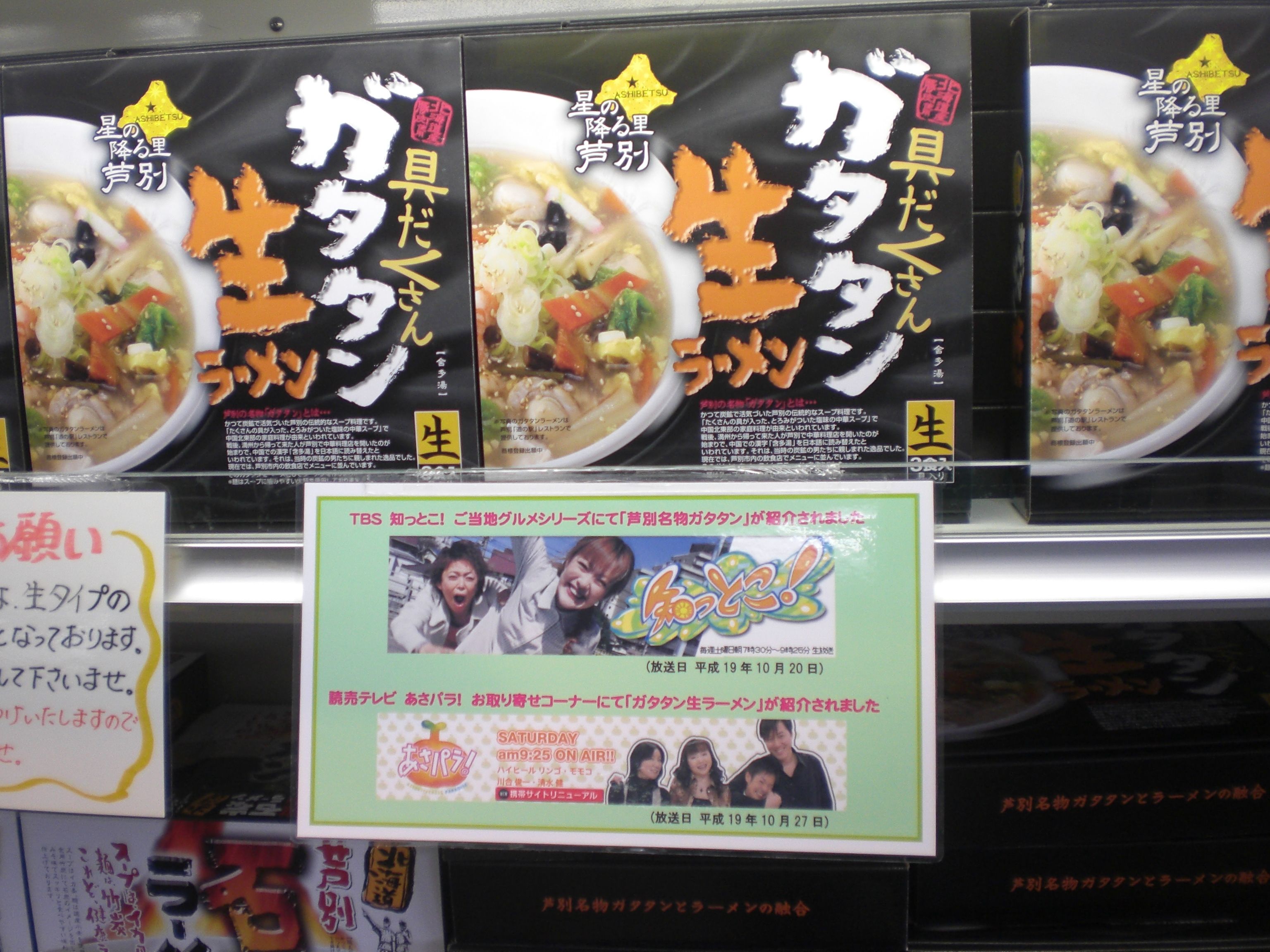 館内の売店では、芦別の特産物が充実しています。中でも気になったのは ガタタン生ラーメン