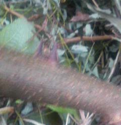 先日駐車場のアカシヤの伐採をしたのですが、アカシヤの棘の写真を撮りました。ピンボケしてますが解るでしょうか?アカシヤの棘は、幹の太い部分にはありません。枝の部分にありますので、大きなアカシヤだと棘があるのに気づかないかもしれませんね!