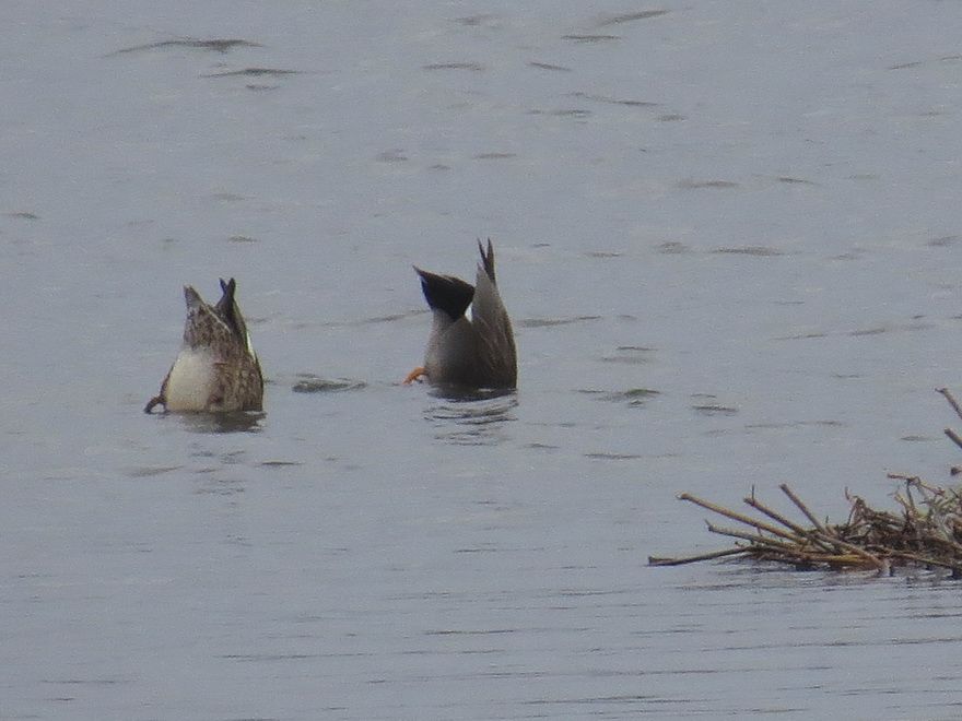 そろそろ、カモたちが北に帰る時期がせまってきています。昨日、柏の葉駅近くの湿地帯で見かけたオカヨシガモの羽色のいろいろを過去に記録した写真を見ながら復習してみました。ご参考になればと思いアップします。一枚目は昨日観察した雄成鳥です。全体に灰色で上尾筒・下尾筒の黒色が目立ちます。二枚目も雄成鳥ですが、一枚目と比較すると頭の模様が額から頭頂、後頭が暗色で頬と耳羽がはっきりと分かれています。三枚目から五枚目は、雌個体です。三枚目は翼鏡が白いのが目立つ雌成鳥です。四枚目も雌成鳥ですが、翼鏡の白い部分が狭い個体です。五枚目は嘴が橙色で小さな黒班がほとんどなく、腹は白く、羽縁が狭い印象があり暗色に見えるなどの特徴から雌幼羽が非生殖羽に換羽をはじめた個体と思われます。六枚目は2019年12月印西市で撮影したマガモです。オカヨシガモと比較すると頭が丸みがあり額が高い点が特徴です。(写真)一枚目2020年3月28日柏市で撮影、二枚目2008年12月松戸市で撮影、三枚目2017年1月柏市で撮影、四枚目2018年3月松戸市で撮影、五枚目2020年2月柏市で撮影、六枚目は前出。