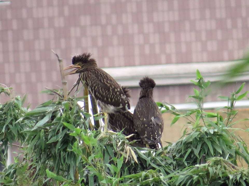 これから関東近郊ではサギの集団繁殖地(コロニー)が形成され、子育てとジュニア誕生の時期を迎えます。毎年、ホシゴイはゴイサギですか?と質問をもらうことがあります。結論を申し上げると、ホシゴイもゴイサギで、写真で示した二枚目のものまでを私はそう呼んでいます。(ホシゴイについていろいろな記述)1年目の若鳥、成鳥になる前のゴイサギの俗称、幼鳥がホシゴイと呼ばれるなどなどとホームページやブログによってホシゴイの範囲もじつに様々です。その背景は、幼鳥の定義はあるものの、若鳥の定義が定まっていないことによります。(ゴイサギの羽毛などの変化)生まれた年のゴイサギの幼鳥は、羽の模様が星に見え、頭はボサボサで冠羽は無く、虹彩は黄色です。2年目に入ると、羽の星模様は消え、冠羽はありませんが、羽毛はかなり整い虹彩は橙色に変化します。その後、3年目になると、上面は紺色、下面は白色で3本の冠羽が出て、虹彩は真っ赤になります。(写真)一枚目:羽の星模様がありますが頭がボサボサのゴイサギ、2014年7月越谷市で撮影二枚目:羽が整ってきて羽の模様が星模様にみえるゴイサギ、2018年7月22日都内で撮影三枚目:第二回目夏羽に換羽しはじまったゴイサギ、2020年6月茨城県土浦市で撮影四枚目:成鳥と若鳥の中間的な個体、2020年6月茨城県土浦市で撮影五枚目:ゴイサギ成鳥、2017年8月茨城県土浦市で撮影(幼鳥と若鳥について)ヒナに最初に生えそろう羽が「幼羽」で、幼羽をまとっている鳥を「幼鳥」と呼びます。たとえば、スズメでは顔の黒い斑が薄い、カワラヒワでは腹に濃い斑点があるといった点で成鳥と異なっていますが、秋までに羽が抜け替わる(第1回冬羽)と成鳥とよく似た姿に変化し、翌年春には繁殖できるようになります。これに対して、繁殖できるまで2年以上かかるツル、サギ、カモメ、タカなどの仲間で、幼羽から成鳥の羽になる途中段階などを「若鳥」と記載している図鑑もありますが、若鳥の定義は定まっていません。(ホシゴイの名前の経緯)平家物語巻第五朝敵揃に記述がある内容は、つぎのとおりです。醍醐天皇が京都二条城近くにある庭園神泉苑での宴の折、池の水際にサギがいたので、六位の者に「あのサギを捕らえよ!」と命じたそうです。命令を受けた人は天皇の命令なのでサギに歩み寄り、天皇のの意向である旨を伝えたところひれ伏して飛び去りませんでした。早速捕らえてくると天皇に献上すると「命令に従ってくるとは、けなげなやつ。すぐに五位の位にせよ」と指示をし、「今日からサギの王」という札を天皇が作りサギの首につけて放鳥したとのことでした。なお、三省堂(1988)には、五位という名は醍醐天皇が神泉苑の宴の折、空を飛んでいたサギが勅命に従って舞い降りたのをたたえ正五位に叙したところ嬉しげに舞った故事にもとづくと記されています。平家物語の訳者によっての解釈が複数あり、記述に違いがあるようです。(引用文献:三省堂コンサイス鳥名事典.p214.1988年刊)
