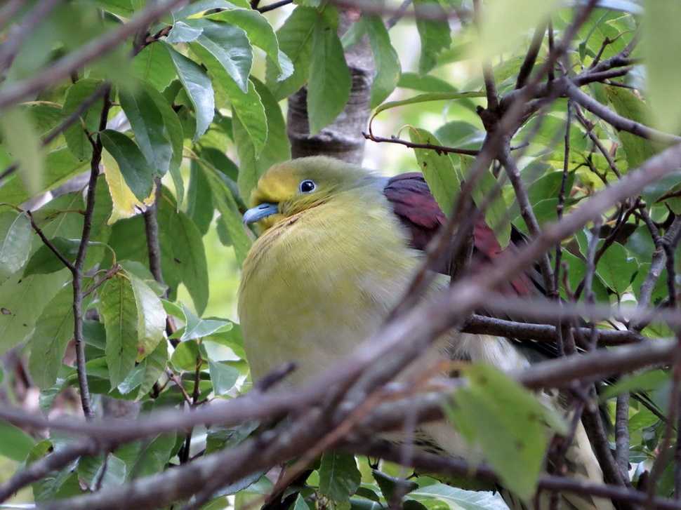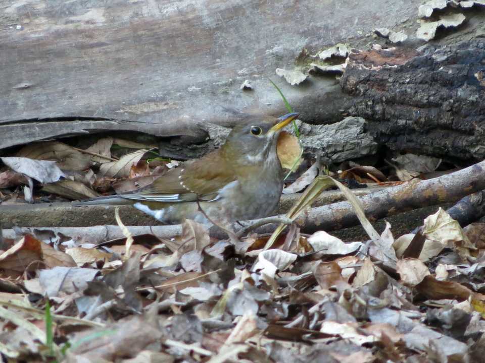 松戸市千駄堀にある21世紀の森と広場に出かけました。9月下旬から10月にかけて実のなっている林にヒタキ類などの小鳥が立ち寄ります。ミズキの実を食べに小鳥が飛来。動きが速いので捕捉できない時間が続きました。目が慣れてきた頃、枝に止まった鳥に注目。上面は黄緑色で、喉と下尾筒が黄色味かがった白色、虹彩は褐色、嘴は黒色、嘴基部にピンク色がかる突起のように見える部分、上尾筒から尾にかけて褐色、目の上に不明瞭な眉斑のように見える部分がありました。一見するとメジロなのですが、白いアイリングはなく、嘴は長く感じません。その後、キビタキと思われる鳥が登場。撮影できた個体の上面はオリーブ色、下面は汚白色、喉と腹中央あたりが黄色味を帯び、雌成鳥と思われました。残り2羽と詳細の特徴を確認できずに終わりました。帰り道、千駄堀池を探索すると、カルガモ、アオサギの姿を見つけました。アオサギは2羽とも頭上が黒く、上嘴が黒色、下嘴が褐色の若鳥でした。池周囲の黄葉がはじまっていました。秋の深まるにしたがい景色の変化を実感できるフィールドです。(写真)2025年9月30日