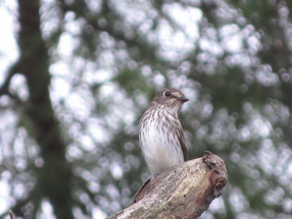 (エゾビタキが観察されるようになったのは近年)今秋、首都圏近郊でエゾビタキを観察した旨の報告が多い印象があります。鳥友から千葉県北西部での動向について質問をもらいました。(手賀沼とその周辺地域で観察されるようになったのは、2005年以降)初めて観察されたのは、柏市布施のあけぼの山公園で2005年9月26日でした。以降、2009年までは同地で9月から10月に観察され、2009年9月に柏市南部で記録とれるようになりました。その後、原因は不明ですが、2010年を境に記録が途絶え、2019年10月26日に柏市南部で再び観察され再度姿を見かけるようになっています。ただし、柏市布施のあけぼの山公園での観察記録は2020年10月5日が最後で、以降姿が見られなくなり、以降は、手賀沼沿岸、柏市北部の公園で記録されるのみです。2020年10月にニュースで桜の落葉が目立つ件が報じられました。梅雨が長引き、梅雨明け直後に急に暑くなり長く続いたため落葉が早くなったとの内容でした。水不足でも落葉することが知られており、柏市あけぼの山公園では桜の落葉が早く、実のなる木も夏バテ気味となり渡来したタイミングとのアンマッチが続き、エゾビタキが立ち寄らなくなった可能性があります。(コサメビタキ、サメビタキが絶滅危惧種に指定)生息地である落葉広葉樹林が失われていること、餌場の減少などが原因と研究者から指摘されています。都道府県のレットデータを確認すると、コサメビタキは31都道府県で絶滅危惧の区分として報告、サメビタキは6都県で絶滅危惧の区分として報告されています。エゾビタキについては、絶滅危惧の区分とはなっていませんが、温暖化の影響で餌の減少の影響を受けた場合に急激に変化することも考えられます。(写真)2枚目とも2025年10月2日柏市内で撮影大雨覆先端と三列風切の羽縁が白いのが若鳥、頬線と顎線に白い黒い線があるのが成鳥です。