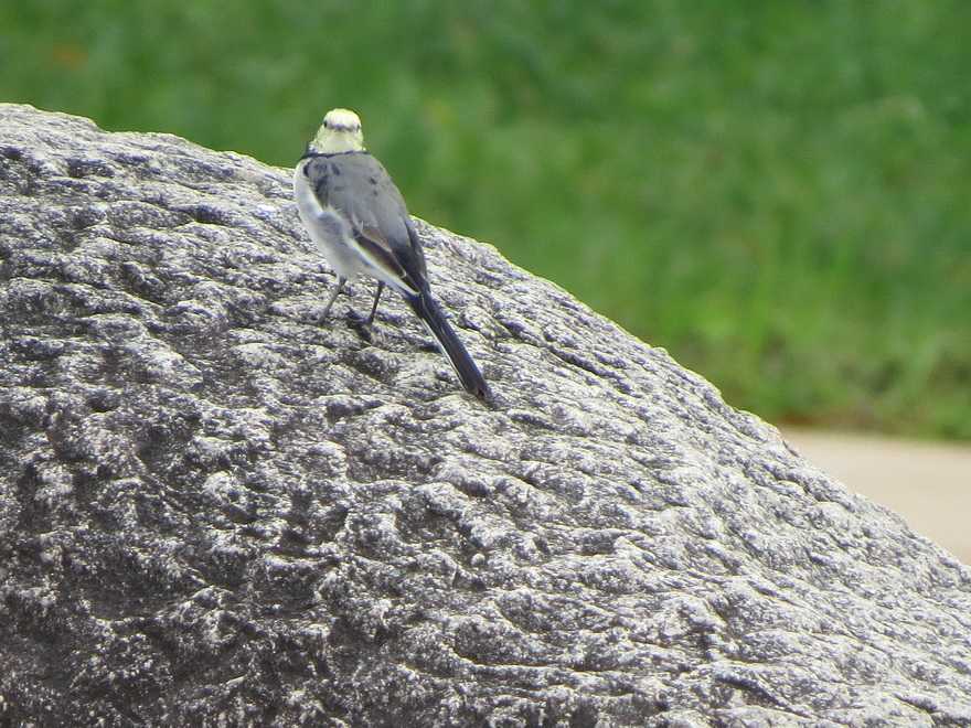 昨日10月3日松戸市千駄堀の21世紀の森と広場で耳羽周辺が汚白色で顔に黄色味があり過眼線のないように見えた亜種ホオジロハクセキレイと思われる個体を観察しました。(ホオジロハクセキレイ雄第一回冬羽と考えた根拠)・耳羽周辺が汚白色、頭上から背が灰色で黒色がかっています。この点が永井(2014)が掲載されている亜種ホオジロハクセキレイと図示、解説されている個体と似ていたことによるものです。(ホオジロハクキレイの特徴と照合)・文献を閲覧してみると、過眼線を欠いたハクセキレイや交雑個体が存在するとの報告があるので他の特徴をさらに調べてみました。結論からいえば、ホオジロハクセキレイと同定できる材料がすべてそろっておらず、ホオジロハクセキレイ似の個体ということになるとの結論です。(胸の黒色部)撮影画像には記録できなかったが胸の黒色部は小さく見えました。ただし、この点は幼羽では黒色部がない個体の存在が指摘されています。再度確かめる必要があります。(大雨覆の模様)観察個体では雨覆に黒帯は認められられませんでした。ホオジロハクセキレイの内弁側に大きな暗色斑があり、ハクセキレイ成鳥の場合は全体が白いのに対して、ホオジロは内弁側に大きな暗色斑があると記されているものがあります。昨日は翼をたたんでいたのでこの点は確認にいたらず。雨覆については、あらためて観察する必要があり、ホオジロハクセキレイと同定するだけの材料が不十分との結論です。(初列雨覆、初列風切、次列風切の白色部の広さ)ホオジロハクセキレイは成鳥、幼羽とも大部分が暗色、成羽の白色部は幼羽よりも僅かに広いが、初列雨覆先端や縁、初列風切次列風切内弁に白色部がある程度とあります。(引用)永井真人.2014.比べて識別野鳥図鑑670.p170-171.文一総合出版.(写真)2025年10月3日撮影