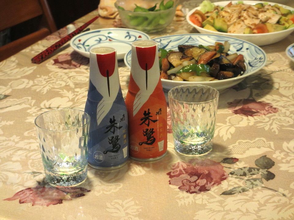 180mlのスリムボトルの水色のラベル(吟醸酒)、橙色のラベル(純米酒)の2種。