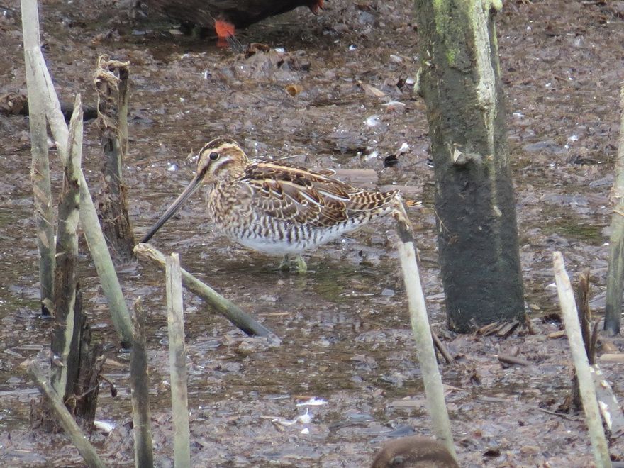 沼の水面にはマガモ、コガモの姿、浅瀬で餌を物色するタシギの姿がふえてきました。