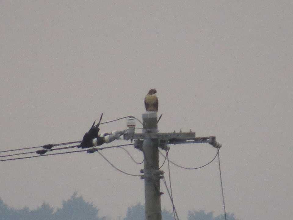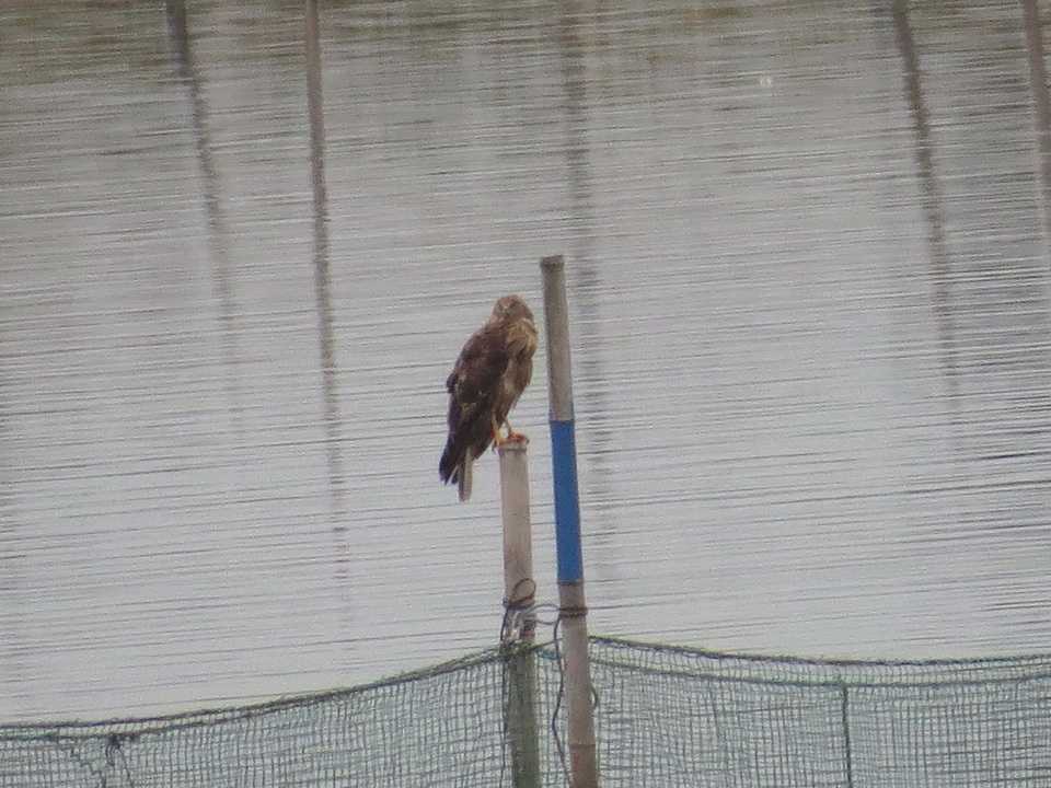ヨシガモ、水面の杭に止まっていたチュウヒ、電柱のてっぺんに止まっていたノスリ、