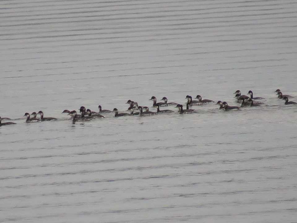 移動していたハジロカイツブリ、カンムリカイツブリ、水草エリアで餌を物色していた