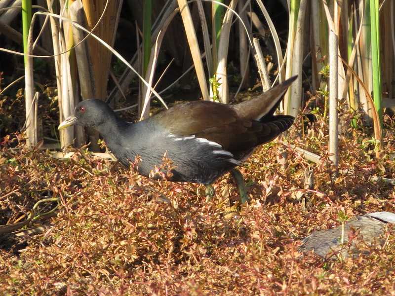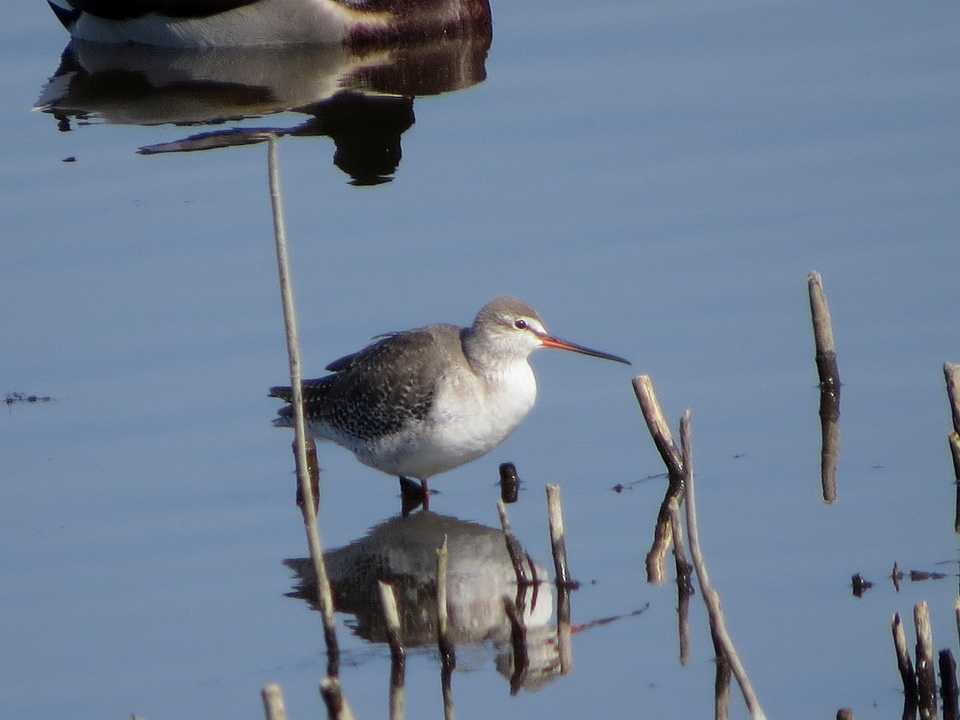 カイツブリ、カンムリカイツフリ、バン、オオバン、カワウ、ツルシギの姿を見つけました。