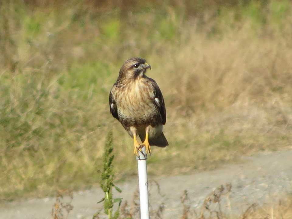 いたバン、沿岸の水田の一角の杭にとまり餌を狙うように凝視していたノスリです。