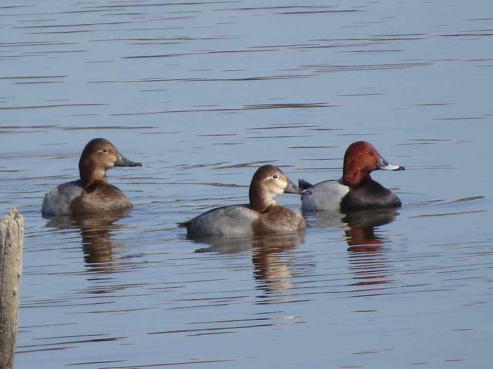 をしていた光景、マガモ、コガモ、ホシハジロ、ベレー帽のような頭上の黒色部が印象的な