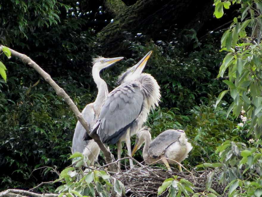 それでも、アオサギ、チュウサギ、コサギ、ゴイサギが子育てしている光景を