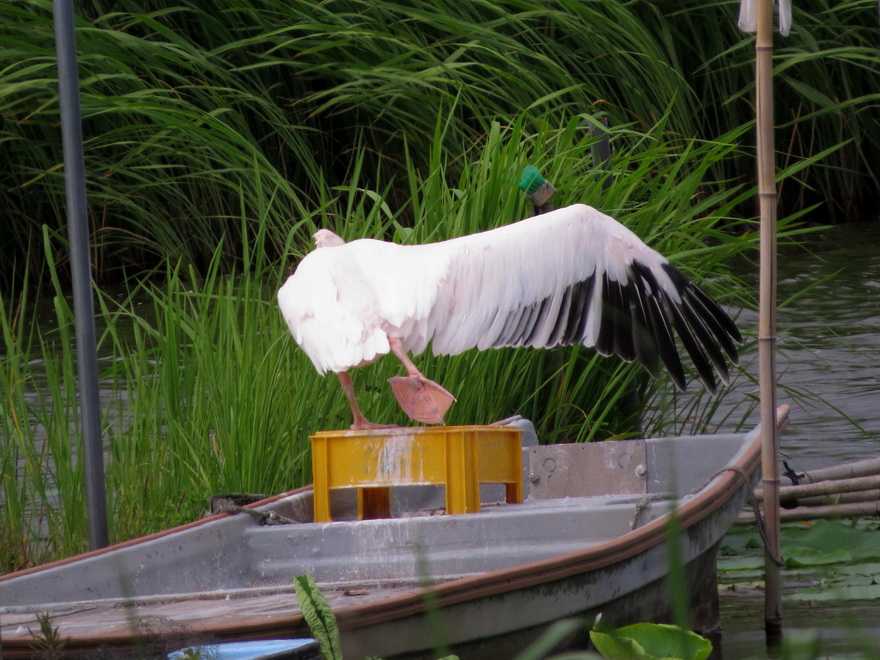 また、印旛沼のスター、モモイロペリカンのかんちゃんは健在でした。
