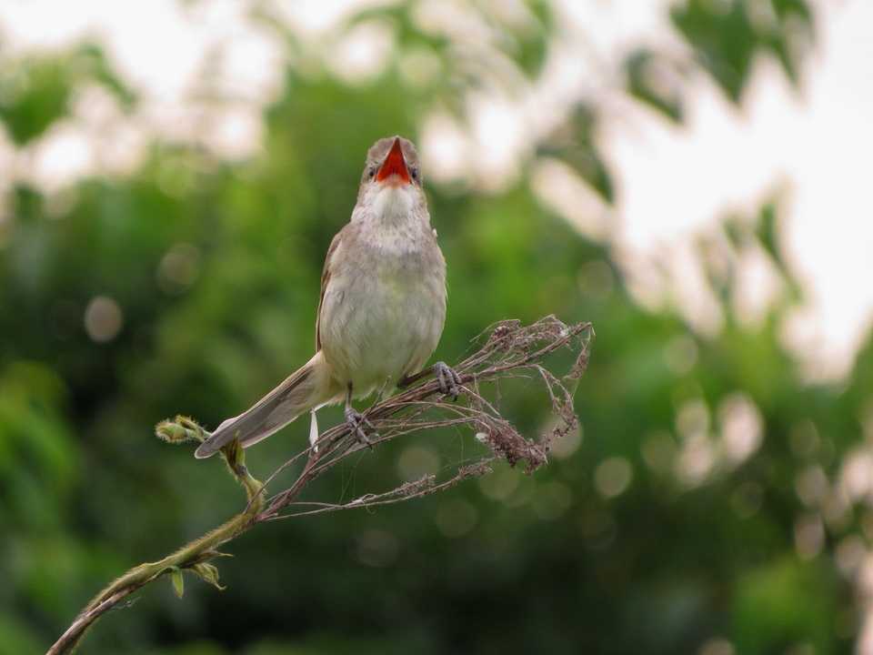 葦原では、あちこちにオオヨシキリ、セッカの姿があり、オオヨシキリが口の中の