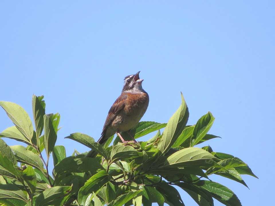 草木のてっぺんで懸命に囀るホオジロとの出会いを楽しみました。