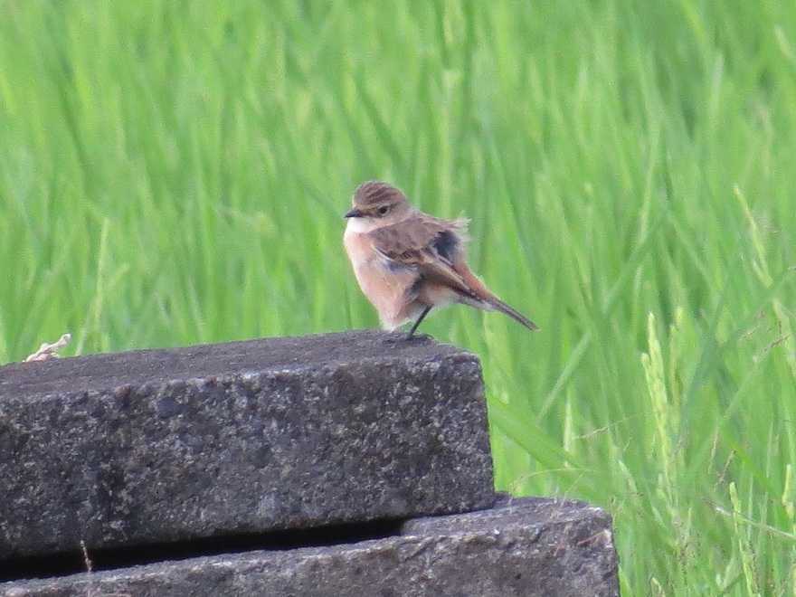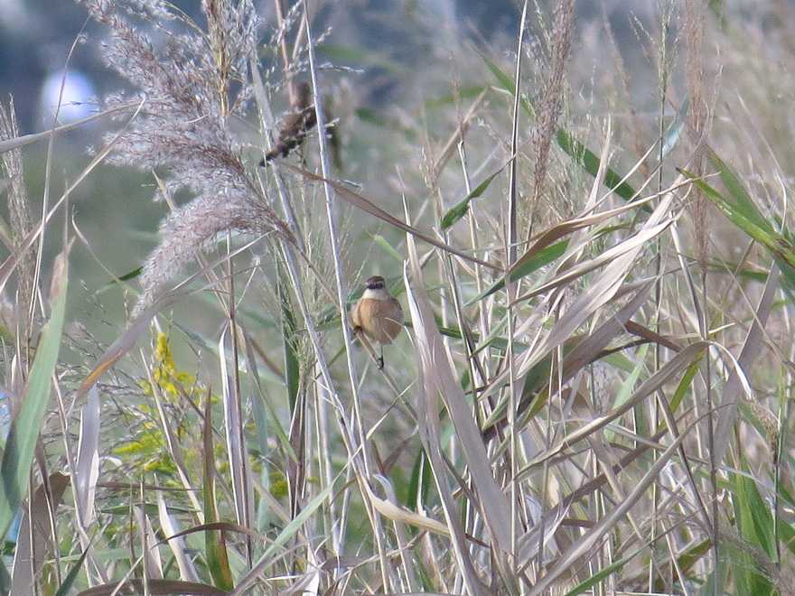 スズキのベージュ色のコラボレーションが素敵です。ノビタキの姿を観察しながら