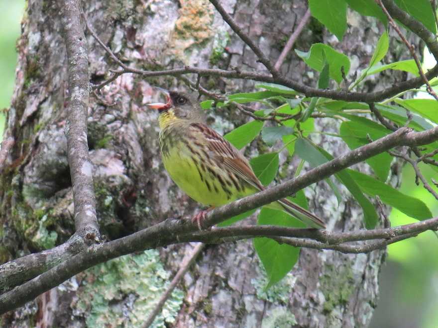 全体的に淡色で目の上後方の側頭線と顎線は黄色っぽい印象でした。