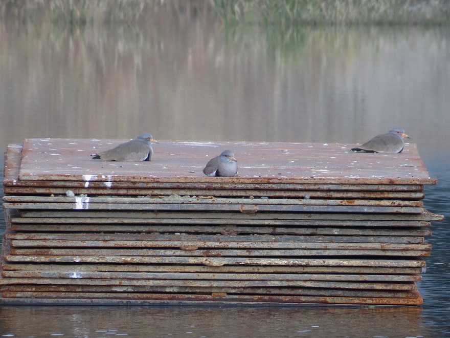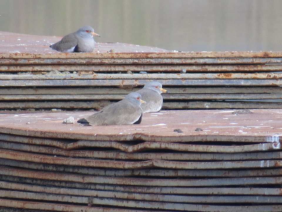 今日のケリは6羽で、前回と同様の調整池の鉄板の上で羽を休めていました。
