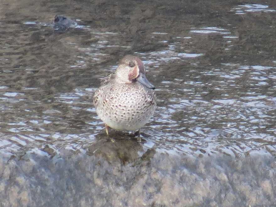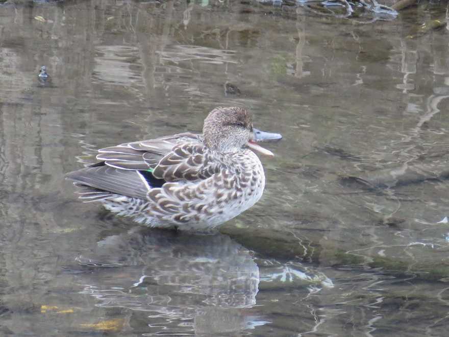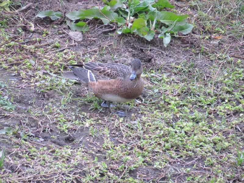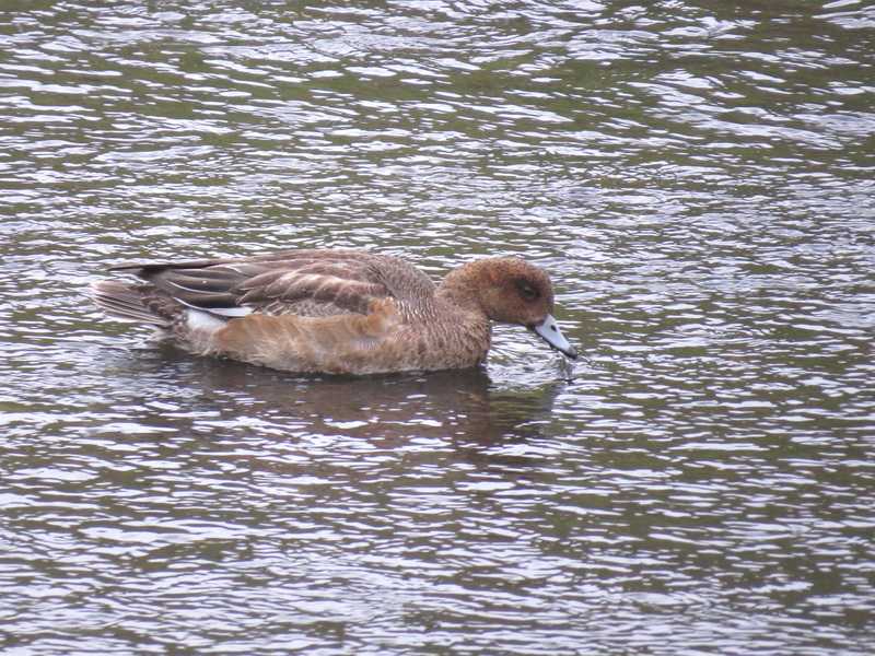 ・ヒドリガモ:雨覆に白い羽縁が目立ち、脇の羽が丸みが強いので雌非生殖羽と