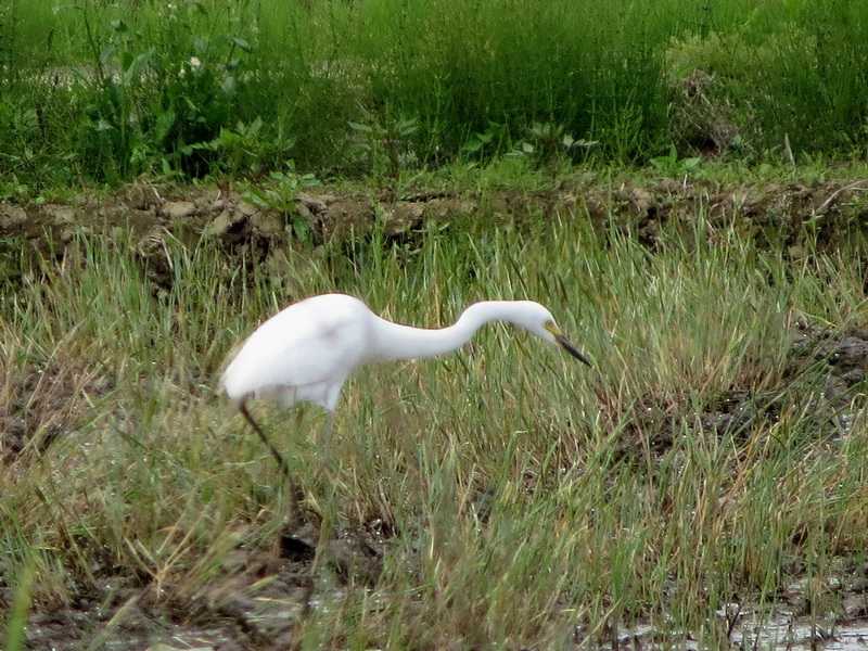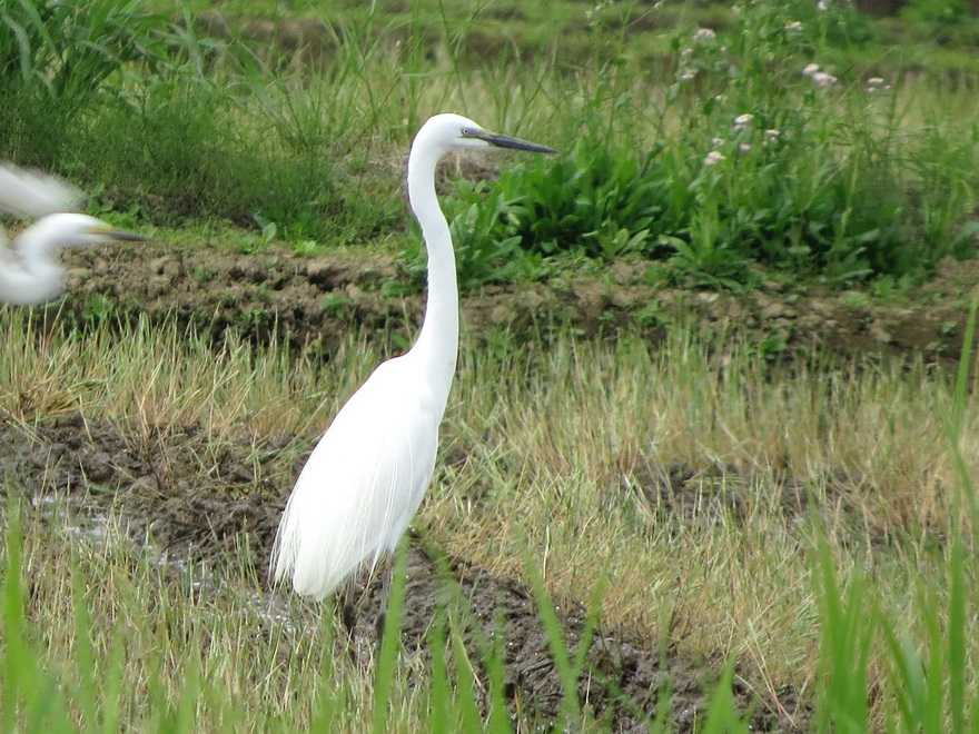 道路をはさんだ反対側の水田地帯に移動し、営巣場所探しをしているようでした。