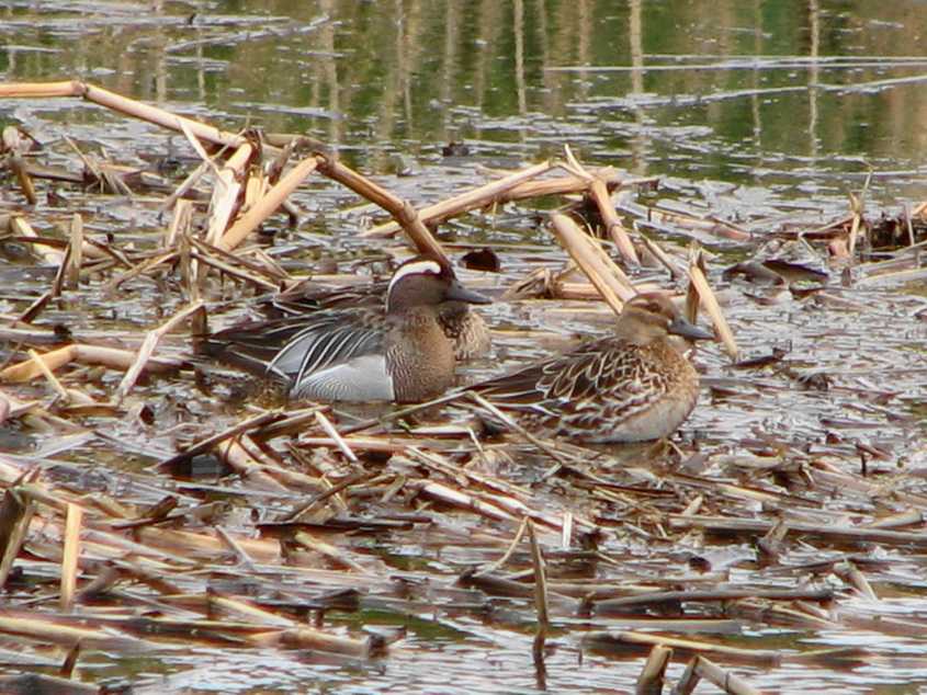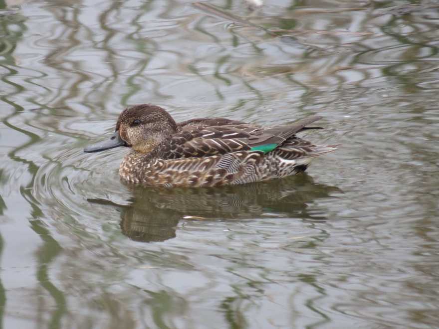肩羽の先端が尖っており、コガモとの識別のポイントです。