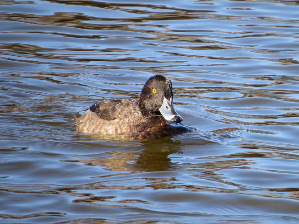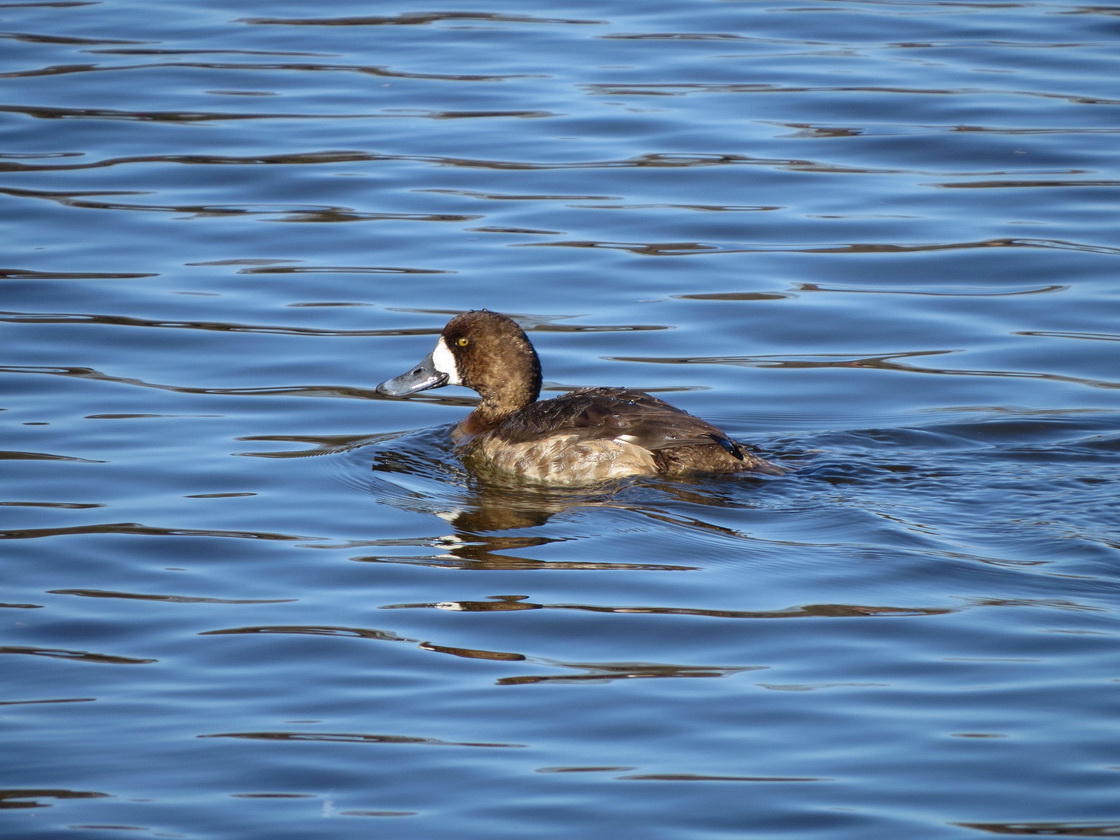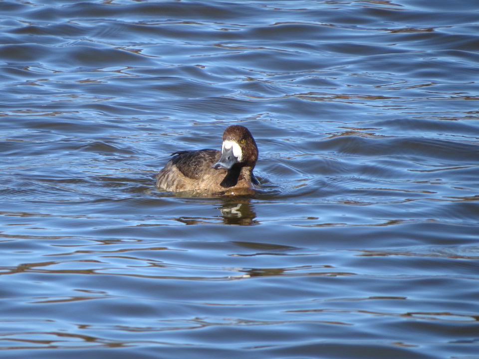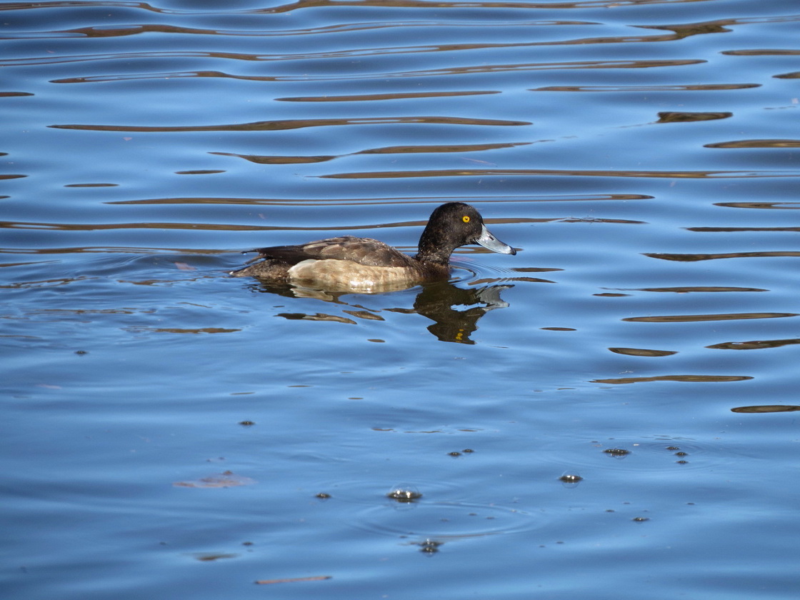 キンクロハジロとススガモの交雑個体は、冠羽がなく、嘴は基部がキンクロハジロよりがっしりとしている印象、嘴先端の黒斑はキンクロハジロに近い広さでした。