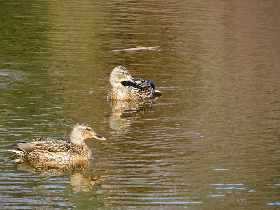到着前後は、水面にマガモ、コガモ、カルガモが少数姿があっただけでしたが、