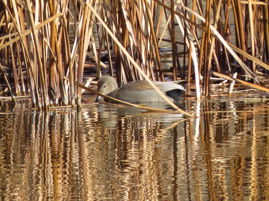 11時すぎに葦原から、オシドリ、オカヨシガモ、ヨシガモ、マガモ、カルガモ、