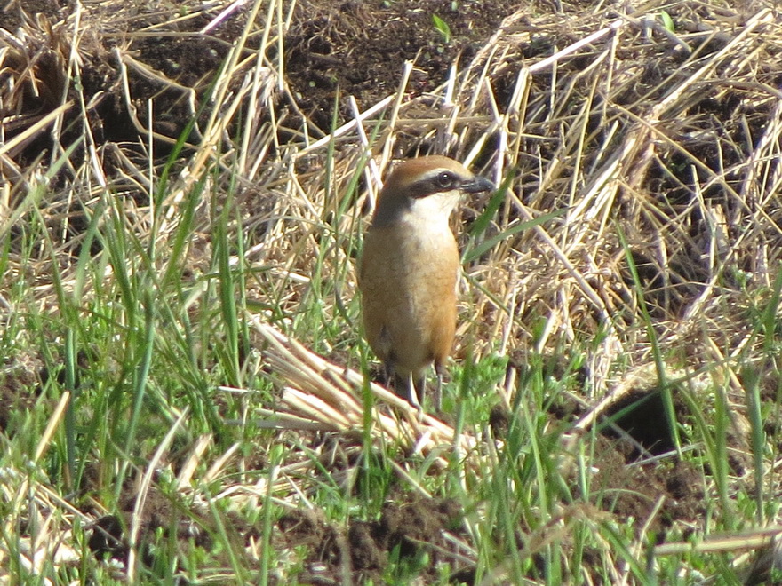 二ヶ所目の谷津田では、電柱に後頭から上面が灰褐色で、うっすら眉斑が見える1羽を見つけました。ただし、胸が斑状なのか胸全体が褐色なのかは確認できずでした。