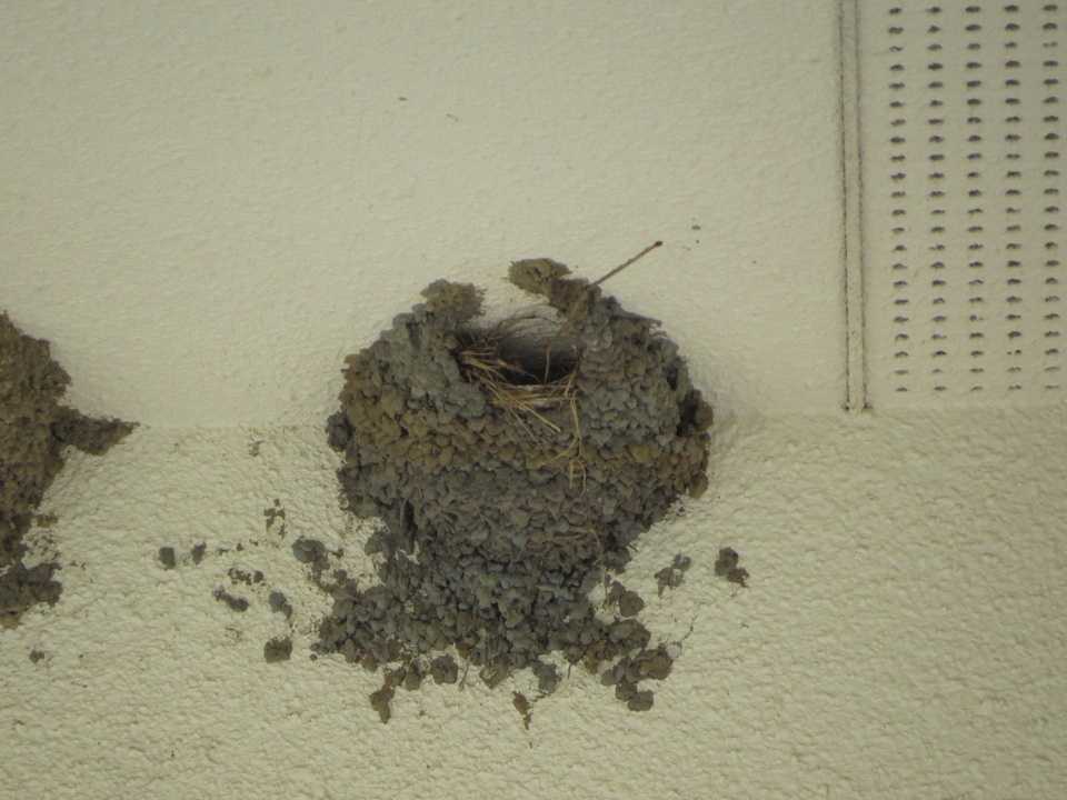 営巣場所の巣を観察すると、入口がとっくり型をした巣、入口の間口が広いタイプ、造巣したのにスズメに乗っ取られている巣といろいろのタイプを目撃しました。