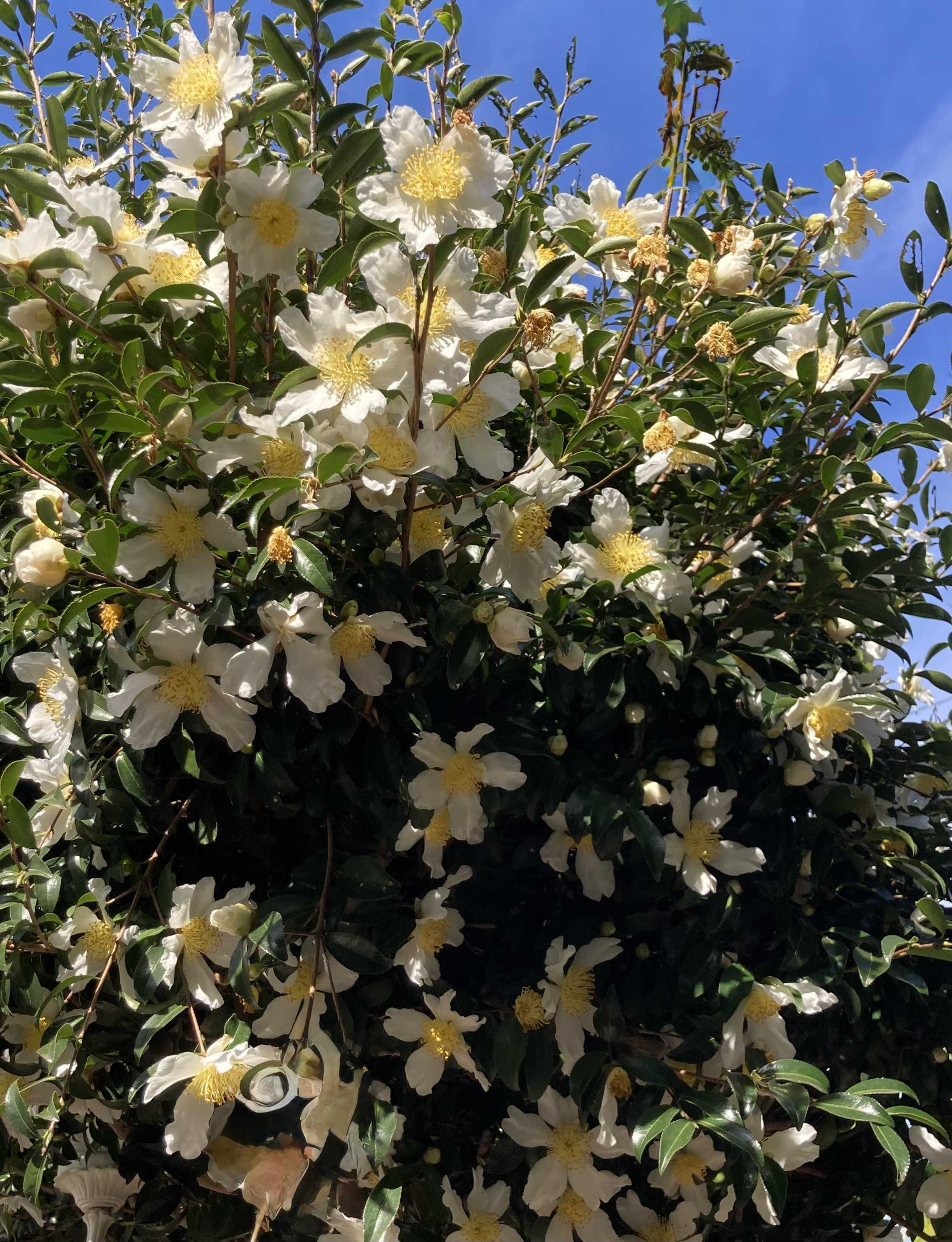 2本のサザンカが満開サザンカと椿は花の散り方が違うのですよねサザンカは花びらがひらひ…