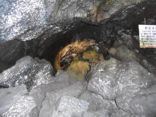 17日、富士の樹海へ行ってきました。富岳風穴と鳴沢氷穴どちらに行こうか。迷って富岳風穴に入りました。富士山の近くは風穴があちこちにあります。わが町にも風穴はあるのですが、観光客が押し寄せるような大きな風穴ではありません。穴の中は涼しいです。氷もそのまま。奥の方は昔、種や、繭を冷蔵して置くのに使っていたそうです。もちろん、風穴は樹海の中にあります。樹海の中の ちゃんと道が出来ている所を歩いてみました。30分くらい歩いたかな。ぼこぼこ道ですが涼しく歩きやすい道でした。そして出たところは鳴沢氷穴でした。車の置いてある所が 富岳風穴なのでまた戻ってきました。