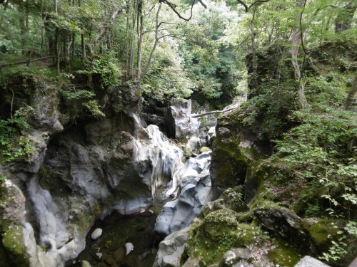 隣の市の観光案内を見てみたら、こんな景色の所をみつけました。町中を通る国道から ちょっとだけ山の方に入った所です。有名な観光地ではないのですが、岩が綺麗です。建物も建っています。私たちの他に子供連れの家族がいました。たぶん、あまり知られていないのかな。ちょっと残念なのは、水の流れが少なく、水が淀んでいました。駐車場も10台くらい停められるのですが、トイレが仮設トイレでした。五龍の滝という所もそう遠くない所にあるのですが、そちらは また今度行くことにします。近くなのに知らない 素敵なところ、けっこうありそうです。