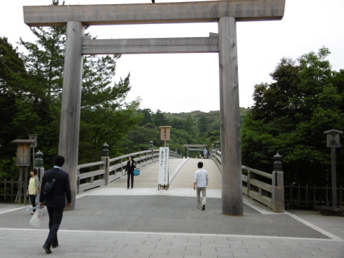伊勢神宮へ行ってきました。 テレビで伊勢の特集番組を見た夫が「行きたい」と言うので 急に 日帰りで行ってきました。 実はね、車を買いました。夫は高速道路を走りたくて、少し遠くに行きたかったのです。 私は一昨年 姉と行って来たのですが、夫は伊勢に来るのは初めてです。暗いうちに出てきたので、6時30分頃着きました。 外宮を参拝して、内宮に、ゆっくり回ったのですが おはらい町のお店は 時間が早すぎて 数件しか開いていませんでした。 せっかく来たので、有名な夫婦岩も観てきました。 姉と来た時は行かなかったので 観られて良かった。 お土産屋さんの前に チンドン屋さんたちがいました。 じかに本物見るのは初めてでした。 曇りときどき パラパラと雨の天気でした。 昼頃に帰り路についたのですが、高速道路で 滝のような雨に遭遇でした。 怖かった。無事に帰れて良かったです。