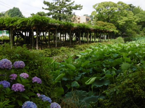 今日も夫とドライブへ行ってきました。 緑に紫陽花がきれいです。 でもね、蓮の花がありません。 まだ早かった?でも、他では咲いている映像観ましたよ。 みつけた。犬の散歩中の奥様に 「蓮の花はこれから咲くんですか?」と聞いてみました。 「咲くと良いんですが・・・なんだか毎年 花が少なくなっているような気がするのよね。」 こんなに葉っぱは元気なのにね。 菖蒲の花は終わっていましたが、紫陽花はまだまだきれいでした。