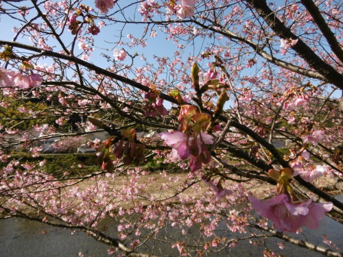 伊豆の河津に早咲きの河津桜を見にいきました。少し早かったようです。6分咲き?くらいかな。2月10日から一ヶ月間 桜まつりが始まり、お店もたくさん出るのですが、人が多すぎるのも面倒なので、早めのお花見です。でもね、お店がないのも寂しい。花より団子。温かい日でしたが、風がありました。近くの来宮神社には大きながクスノキ。一番大きなクスノキは樹齢千年以上だそうです。トトロが住んでいそう(^◇^)役場にあった桜は満開でした。