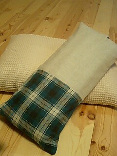 もうすぐ敬老の日。ダンナ様のおじいちゃんに何をプレゼントしようか???去年までは、プレゼントのかわりに一緒にお寿司でも食べてお祝い今年は、施設にいるためそうもいかず。。。食べ物の差し入れは禁止だし。パジャマやタオルなどはたくさんあるし悩んだ末に決めたのが、枕と足枕せめてカバーだけでも手作りしてプレゼントっぽく枕には肌触りの良いワッフル地と足枕にはリネンを使用しました。初心者なので、ホントにただ縫っただけでも、気持ちはこもってるから良しとする.......自己満??
