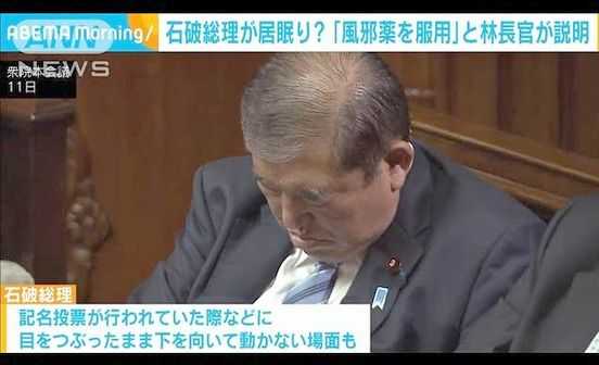 国会で いびきをかいていた 前・石破総理、 ヒビキの前に イビキあり(笑)(笑)