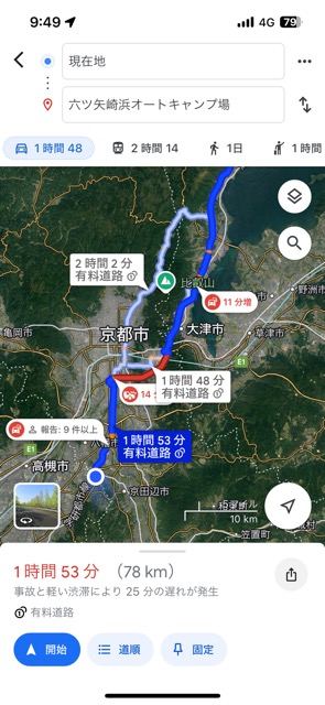 当初の予定では彦根・長浜経由でキャンプ場に向かうつもりであったが、これは流石に間に合わない。