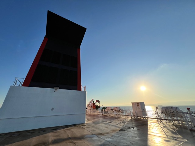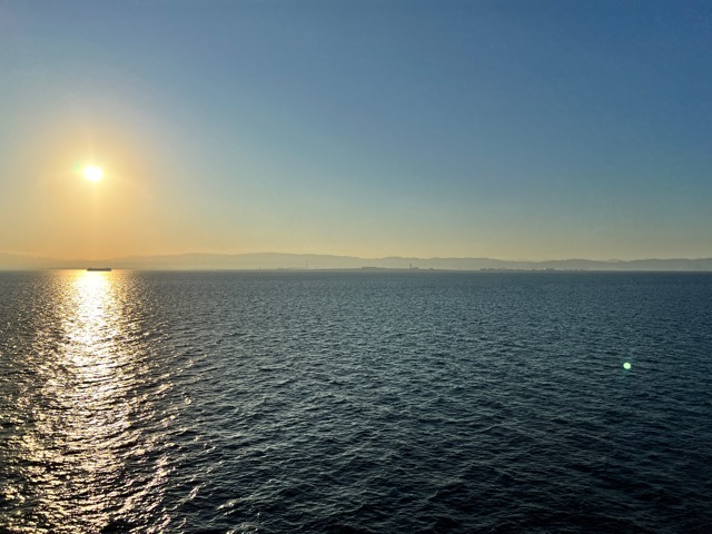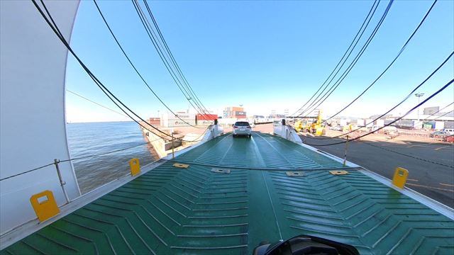 さんふらわあはコンテナ船行き交う紀伊水道を走り、定刻通り7時50分に大阪ATCに着岸。