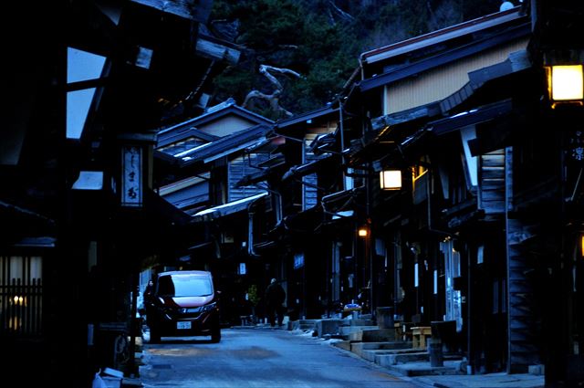 日も暮れかけた奈良井宿は、目の前の峠から吹き下ろす風でとても寒い。