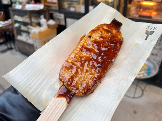 平べったいきりたんぽのようなものに、これでもかと甘い味噌が塗ってある。