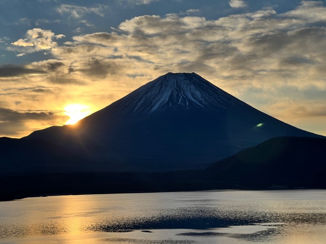 防寒装備に身を包み展望台へ行くと、富士山の稜線が赤くなりつつあった。