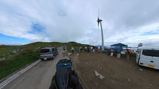 朝5時起床。朝食は7時からなので、先に出発準備を整える。荷物をまとめバイクに向かうと、すでにO姐さんが準備中であった。慣れた手つきで積載を済ませて、これまたヘルシーな朝ごはんへ。そして8時に出発となった。O姐さんは、久万高原町にいる知り合いを訪ねるということで一時解散。ワタクシはローソンのトイレにこもる(笑)その後再度集合し四国カルストへ!天気は良好だが、山に雲がかかっている。果たしてどうなることやら。今回の四国カルストへのルートは、車の狭路すれ違い渋滞が発生しない檮原からのルートを選択。檮原の町に到着するとマラソン大会が開かれており、とても賑わっていた。でも名前が「龍馬脱藩マラソン」って^_^;迂回ルートを通り、道の駅で小休止。そこから四国カルストへ向かう。センターラインも引かれた快適な道であったが、呪い車2台のせいで大渋滞。ラジエーターの熱風に耐えながら、やってきました四国カルスト入り口星空ビレッジTENGU。ここからの眺めが最高!四国の深い山々が見渡せます。雲が雲海のようになっていて、なんとも幻想的。そこには今登ってきた道も。おみやを買う際に、店の方に話を聞くと、さっきまで霧で何も見えなかったとのこと。山の天気は変わりやすい。雲が残ってはいるが、それでも天候が回復したことに感謝。おみやを大量に買い込み出発した。実は後ろに積んでるコンテナは、おみやを入れるためにほぼ空なのです(笑)1番後ろはクーラーボックスも搭載しております(笑)帰りにじゃこ天と生酒を買って帰ろう。さてさて、実は四国カルストに来るのはこれが初めてなのです。イメージでは阿蘇のミルクロードや、北海道の宗谷丘陵を浮かべていたのですが、四国カルストは道が狭い!そこを大きな乗用車が通るものだから、渋滞もあちこちで発生しています。さらに歩行者も多いため、気をつけながら進行。それでも広がる絶景に心奪われます。広がるカレンフェルトがまるで羊のようで美しい。ドリーネは道路からでは確認できなかった。そのまま前からチェックしておいたフォトスポットに到着。持参した一眼レフの出番です。久しぶりにバシャバシャ撮りまくる!帰ってから現像が大変なやつだ笑久しぶりの眼レフ操作で勘が戻らず、駄作を量産^_^;あぁ、せっかくの四国カルストが・・・。それでも景色は最高で、特に高原に一機だけ建つ風力発電の景色がとてもエモい(使い方合ってる?O姐さんも写真を撮りまくる。さて、景色も満喫できたし、今度は大台ヶ原にソフトクリームを食べにいきましょう。中編に続く。