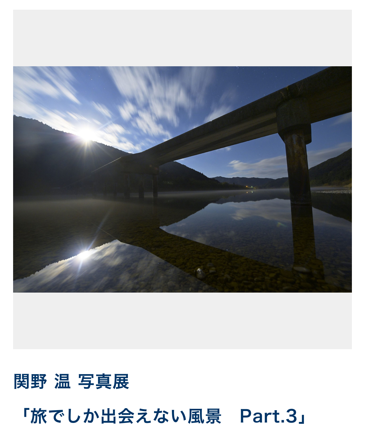 紹介が遅くなりましたが新宿御苑のギャラリーシリウスで、私の写真の師匠である関野温先生が個展を開催中です。30日まで開催されていますので、お近くの方はぜひ!