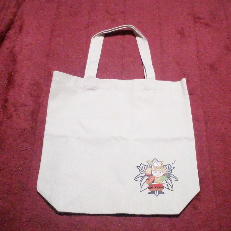 可愛らしいイラストの入った手提げ❗😄(今は手提げなんて言わないか?😅)まだ使ってないので分かりませんが、結構入るかな✨こういう物って、使ってもらってなんぼ💡ですから、知らない人が持っていると😁ニヤリ😁ですね😄こういうイラストも、町内のタオルと違って新鮮ですね😉いろんなパターンの義経を並べて・・・結構大変だな😅