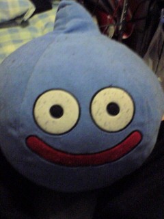 よく私の枕にされてるスライムのぬいぐるみ。パソ子さんに向かうとき抱えられてることも多いです。高校のとき先輩からもらったもの……たしか。お腹が空く前に寝ます。おやすみなさい。