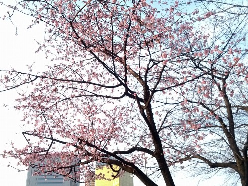 隅田公園にすでに花をつけている桜がありましたよ。^^ほとんどの桜はまだつぼみ状態ですけどね。風が強くて散ってしまわないか、ちょっと心配です。