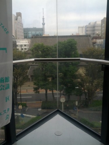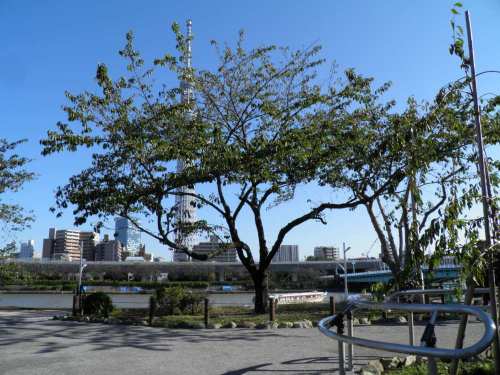 今日は奥さんと人形町に用事に出かけ、その帰りに中華料理店でチンジャオロースとチャーハンをテイクアウトして浅草に戻ってきました。で、隅田公園の最近整備された小高い丘で食事にしました。そこのベンチに座って見える風景です。今日は雲ひとつ無い青空で、しかも空気が澄んでいたので、きっと遠くまで良く見えたことでしょうね。^^